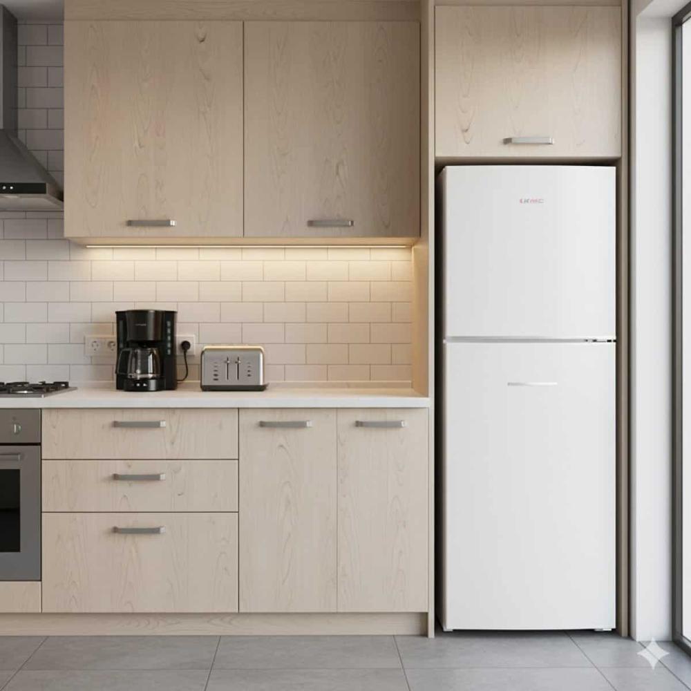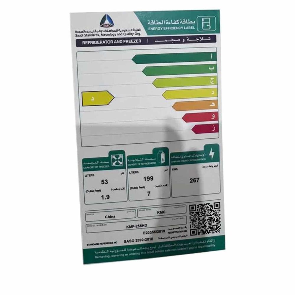 ثلاجة كي إم سي بفريزر علوي 8.9 قدم – ثلج أبيض KMF-255HD