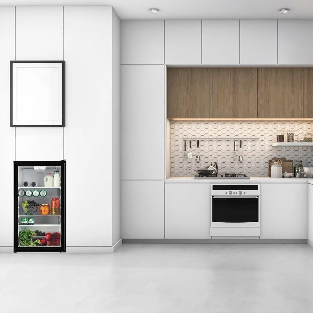 مصممة خصيصًا لتناسب احتياجات السوق السعودي، تأتي هذه الثلاجة بسعة 90 لتر وبباب شفاف أنيق يتيح لك عرض المشروبات بشكل منظم وجذاب.